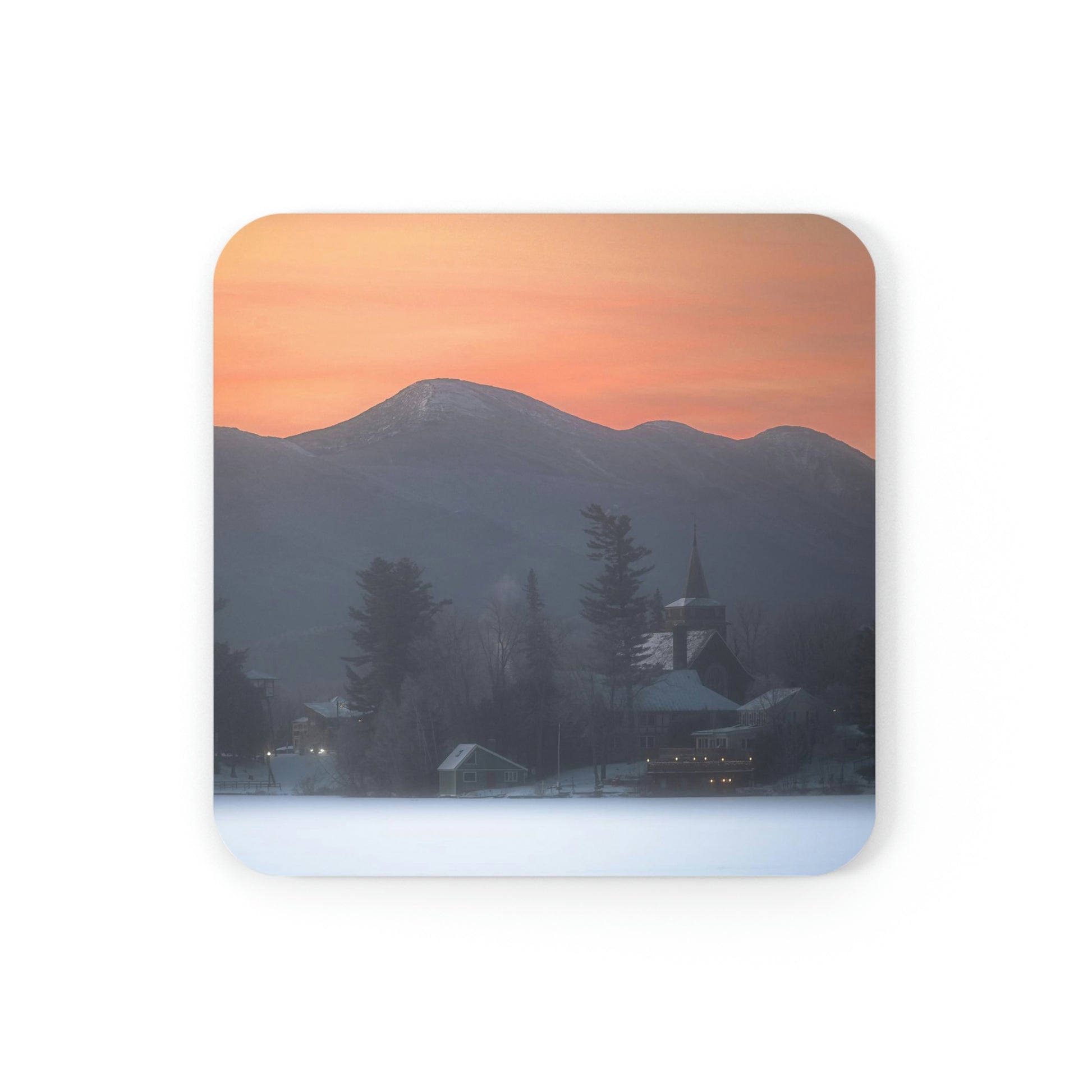 Cork Back Coaster - Mirror Lake Winter Sunrise