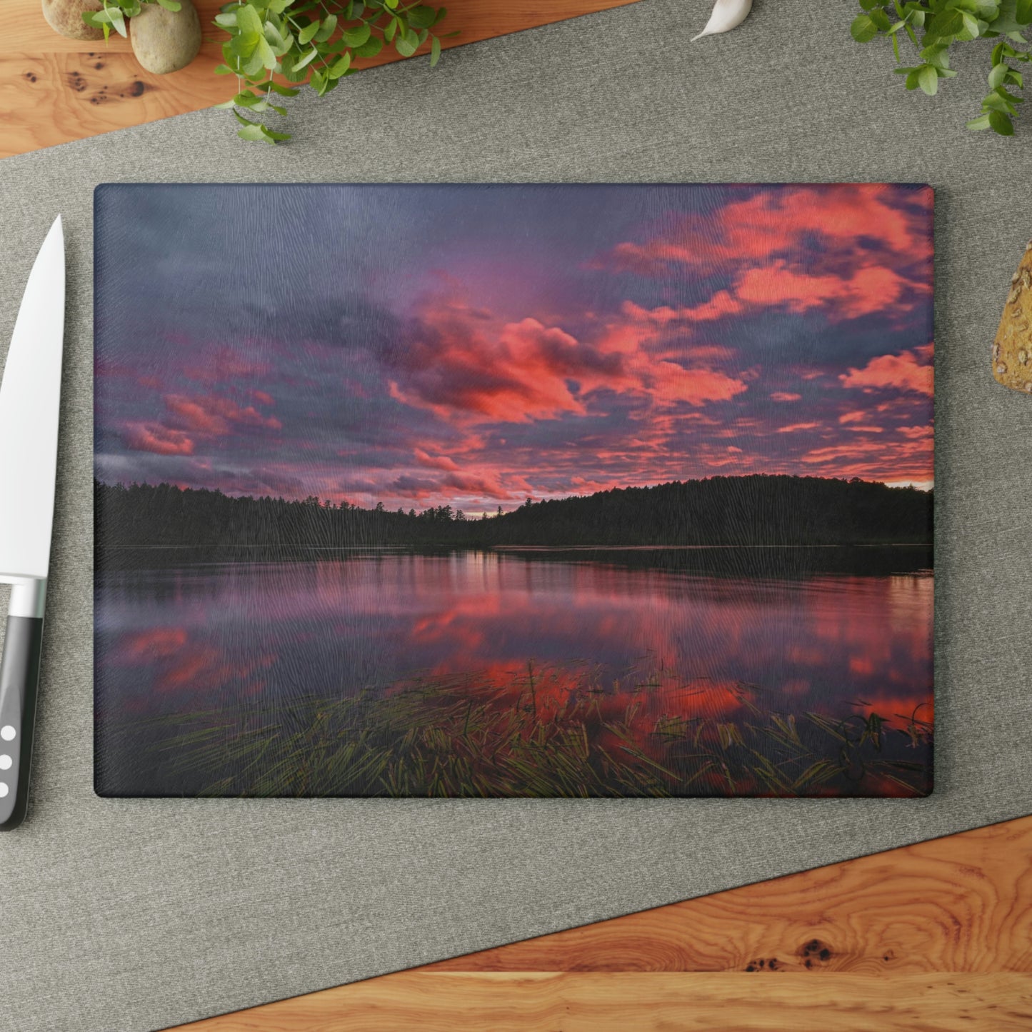 Glass Cutting Board - Reflections of Summer, Colby Lake
