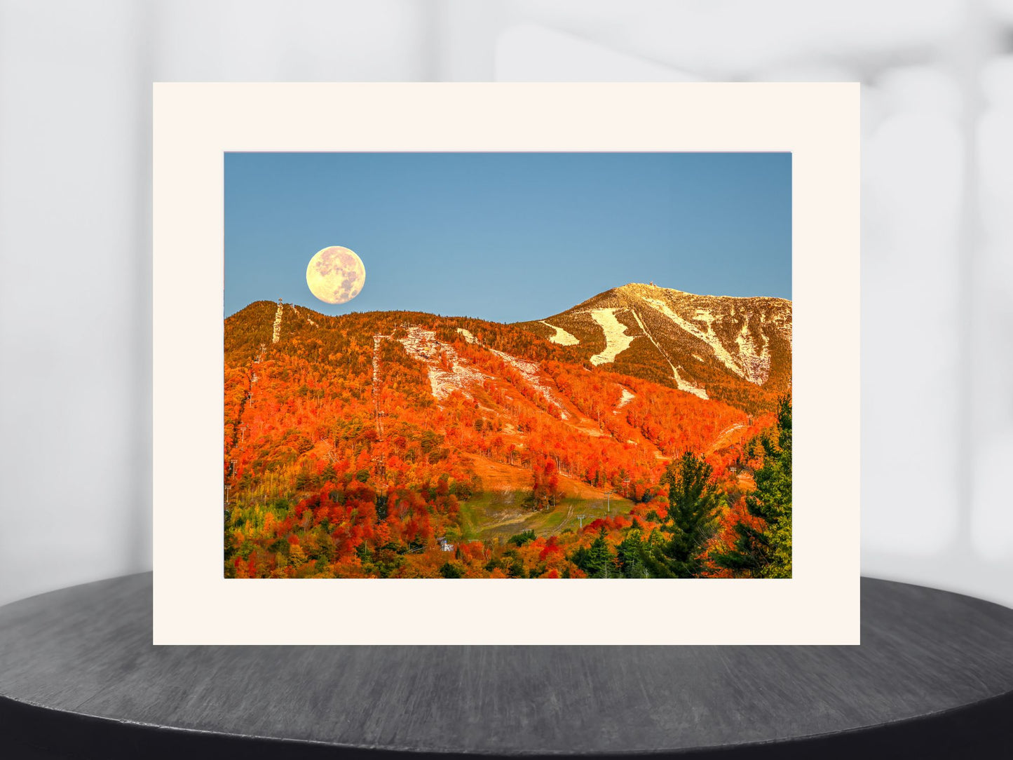 Experience the breathtaking beauty of nature in your own home with the Hunter's Supermoon setting over Whiteface Mountain print. Let the fall colors and winter chill bring you to the magical moment captured in this print. Perfect for any space in your home or office!
